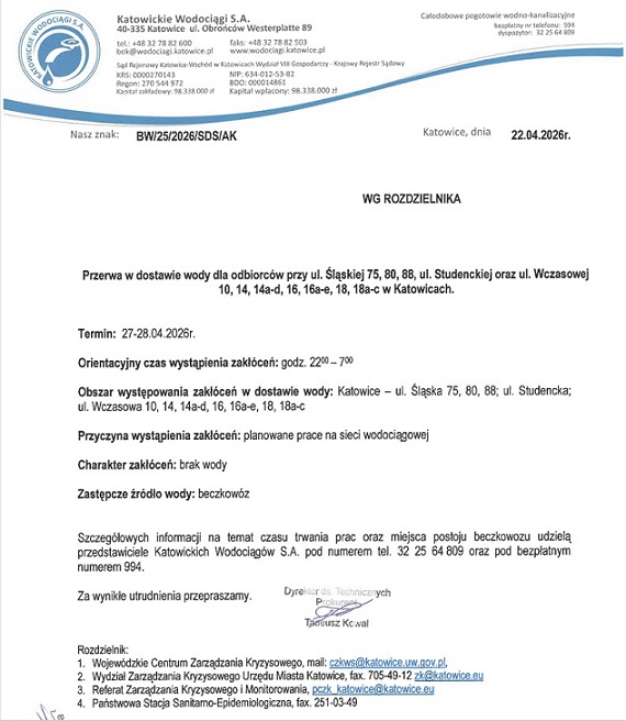 Przerwa w dostawie wody – ul. Wczasowa 14-18